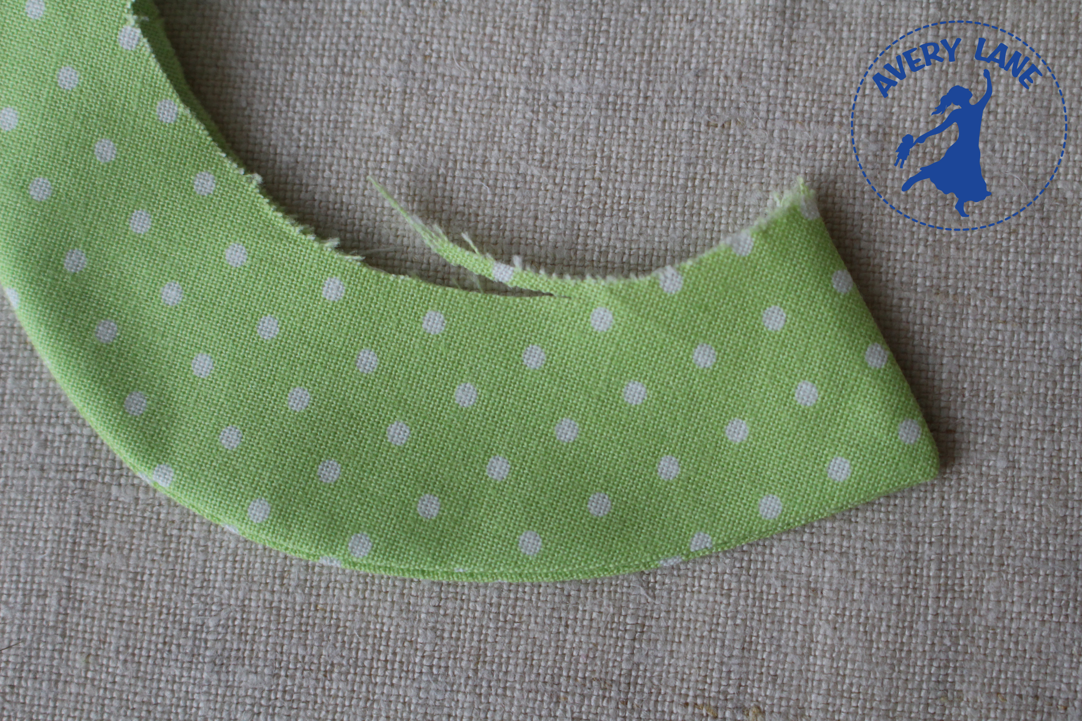 - Press the edge seam slightly to one side, to the side that will be touching the bodice. Trim away the raw edge, so the raw edges are together and even again. When pinning the collar to the bodice, keep all the raw edges even.